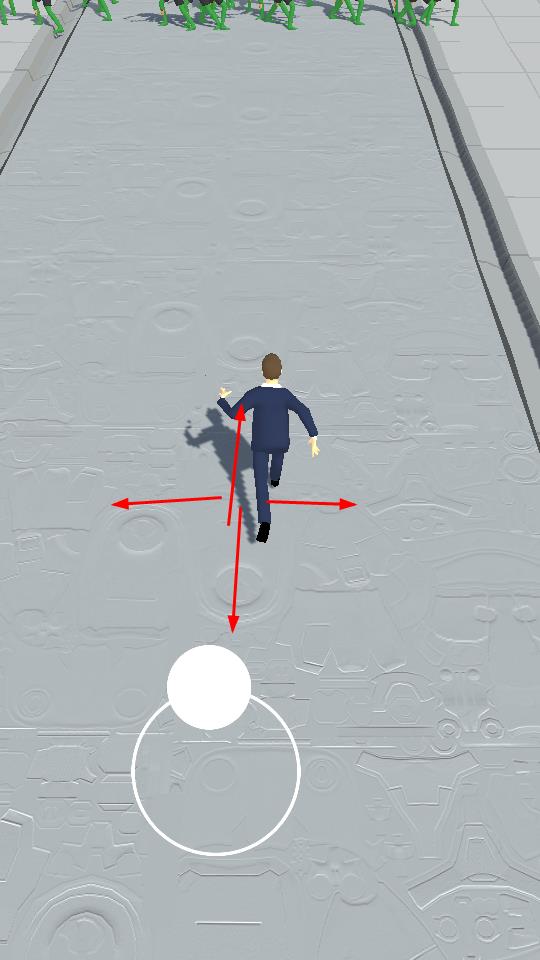 1、通过虚拟摇杆操控角色移动,朝前方绿色敌人方向推进,开启生存挑战。