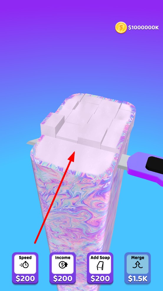 1、操作节奏把控: 初期手动高频点击,借连续切割触发连击特效,让单刀收益倍增;中期解锁自动模式后,定时手动补切肥皂中心区域,避免碎块堆积影响后续切割效率 。