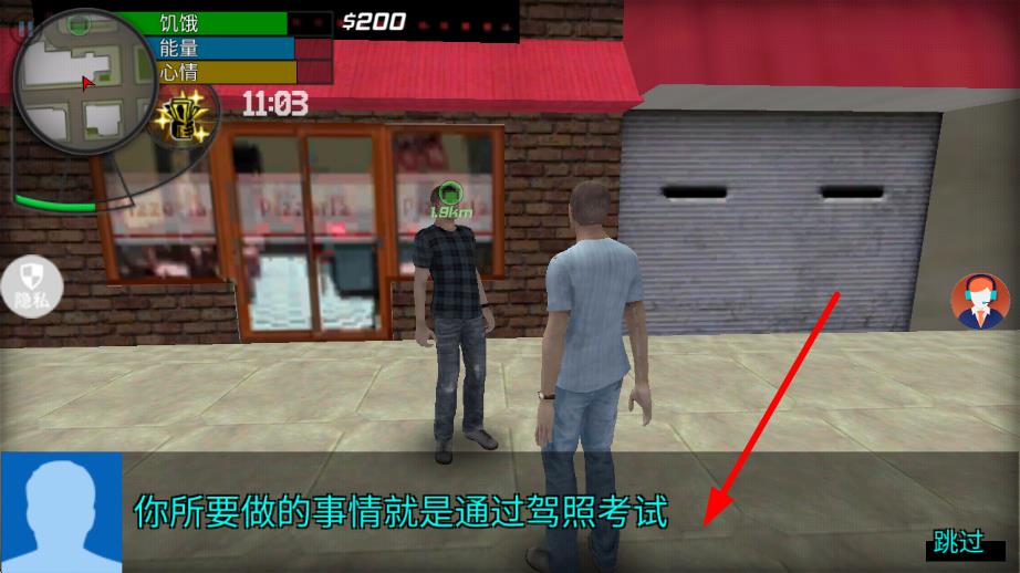 1、在游戏初始界面,与NPC对话接取通过驾照考试任务,按指引前往黄色出租车处,点击上车开始驾照考试流程。