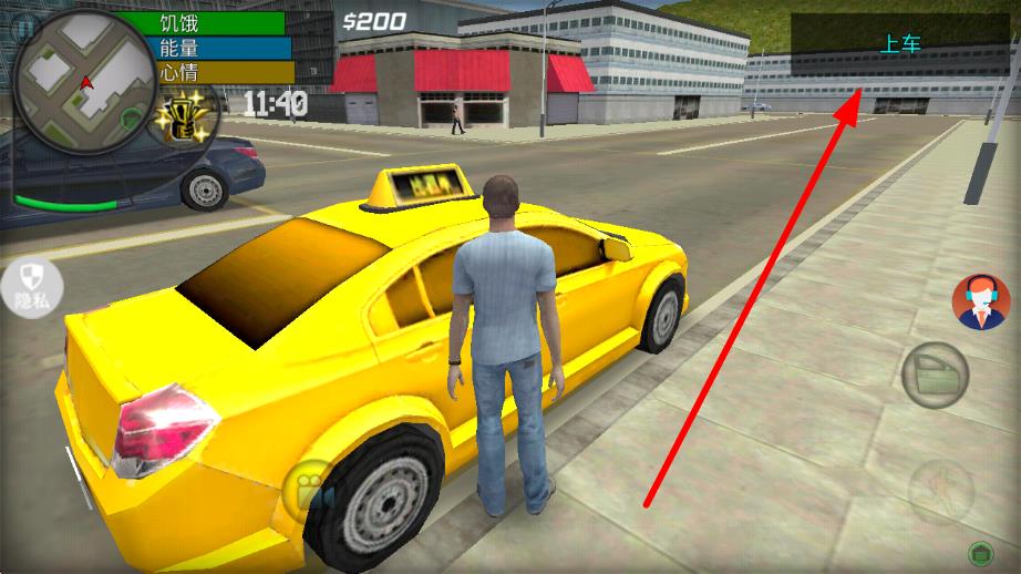 2、在开放世界场景中,找到黄色出租车后,点击界面提示的上车按钮,进入车辆驾驶环节,按规则完成驾照考试相关操作。