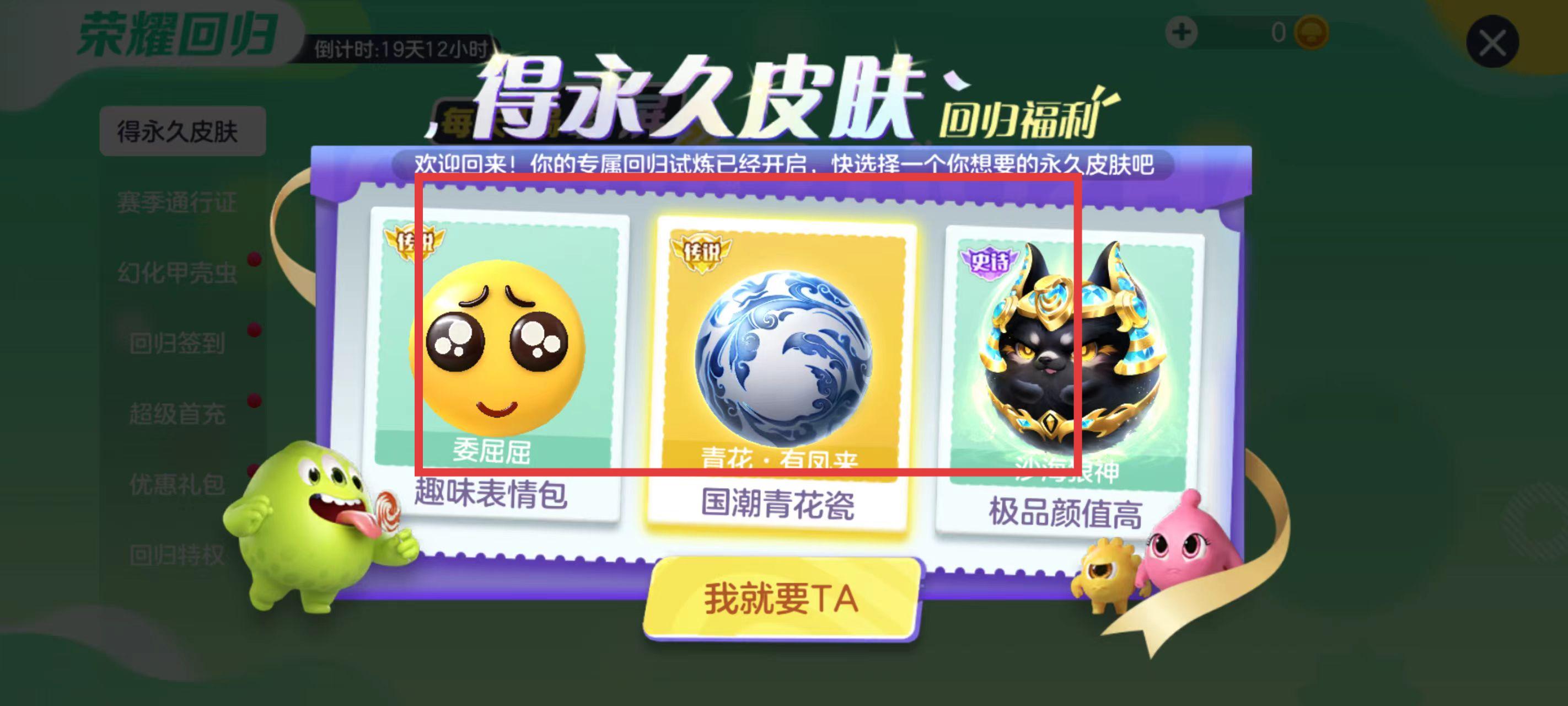 2、在得永久皮肤板块,会展示可供选择的永久皮肤,选择自己心仪的皮肤,点击我就要TA按钮。
