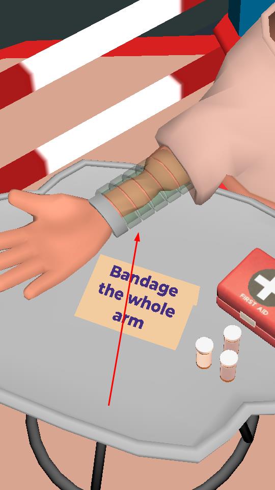 2、格斗结束后,进入治疗环节,按照提示Bandage the whole arm,为角色包扎整条手臂。