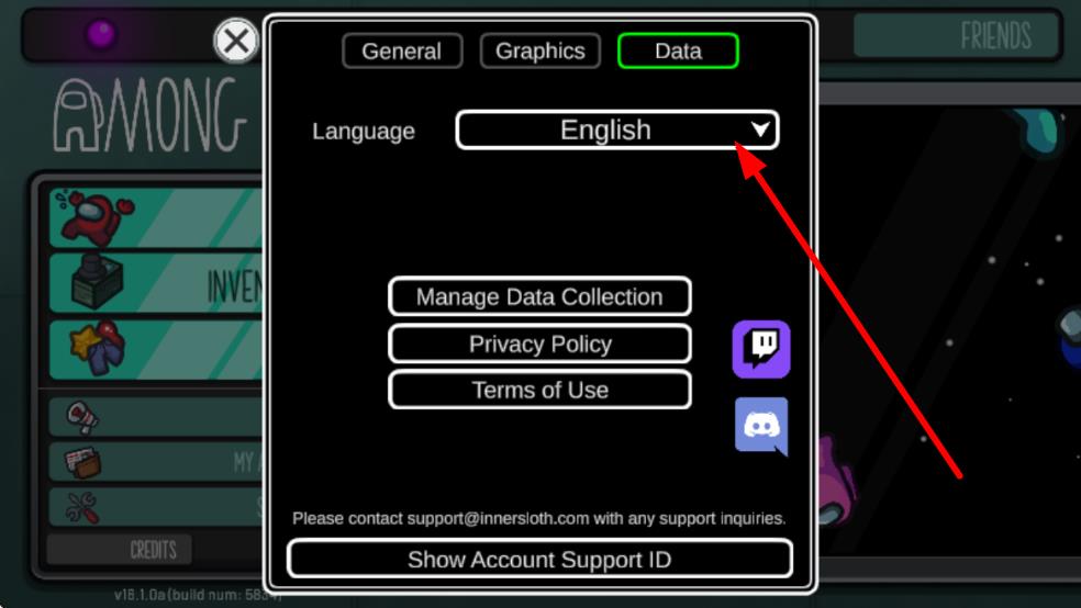 3、在Data页面中,找到Language选项,点击其右侧的下拉框,在下拉菜单中选择中文,即可将游戏语言设置为中文。
