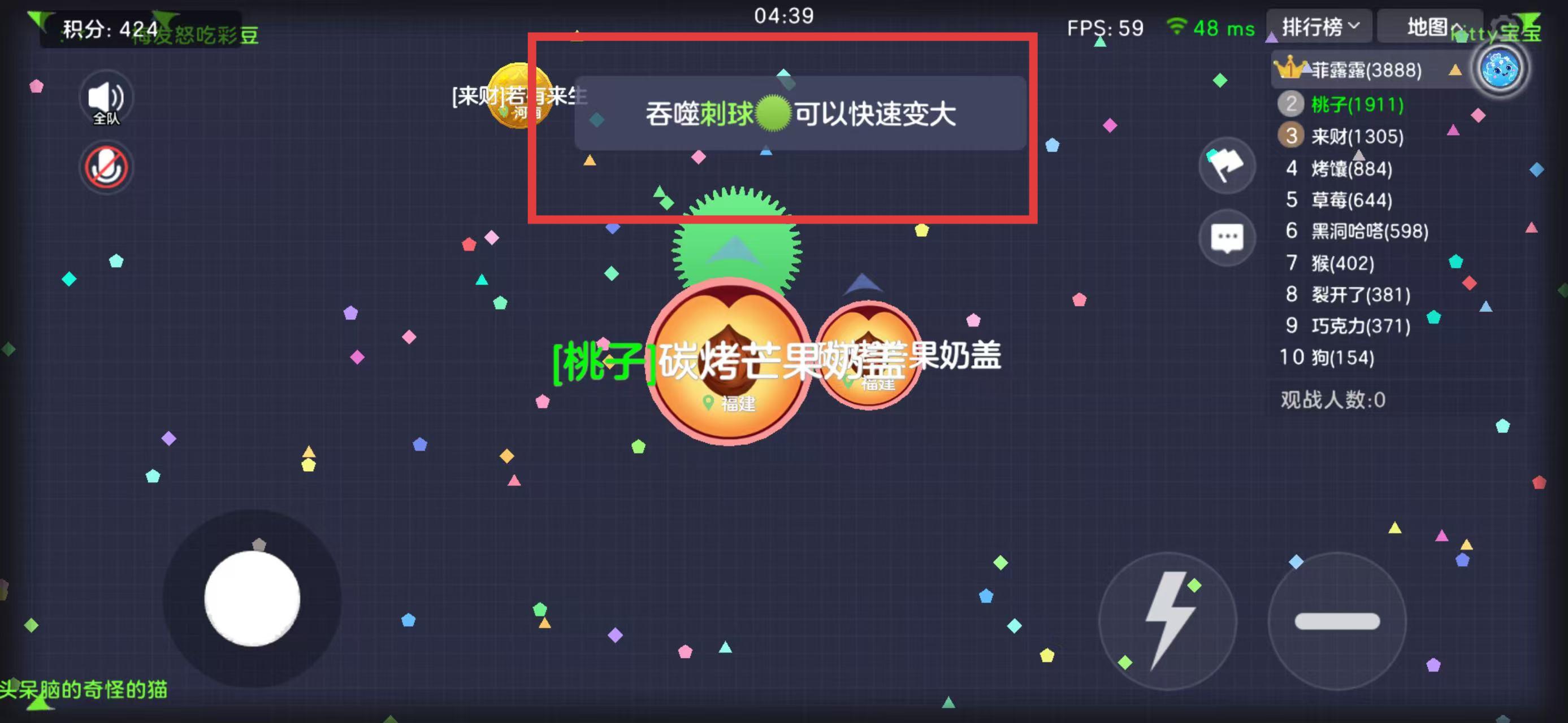 2、在游戏地图中,留意彩色小方块,操控球球移动去吞噬它们,积累体积提升积分,让角色碳烤芒果奶盖逐渐变大变强。