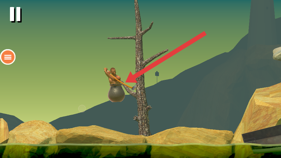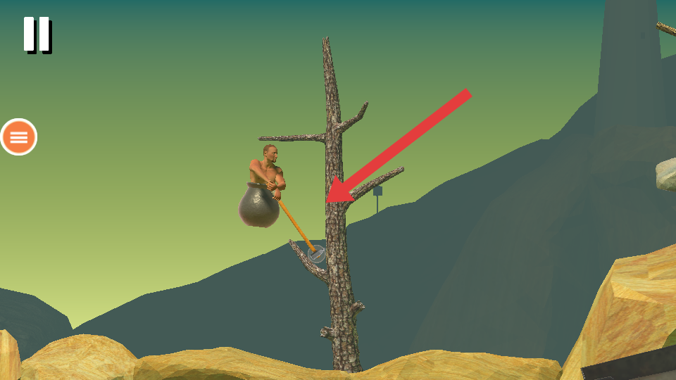 1、进入游戏,操控罐中角色,利用锄头勾住岩石等物体发力,按提示熟悉攀爬基础操作,克服初始地形。