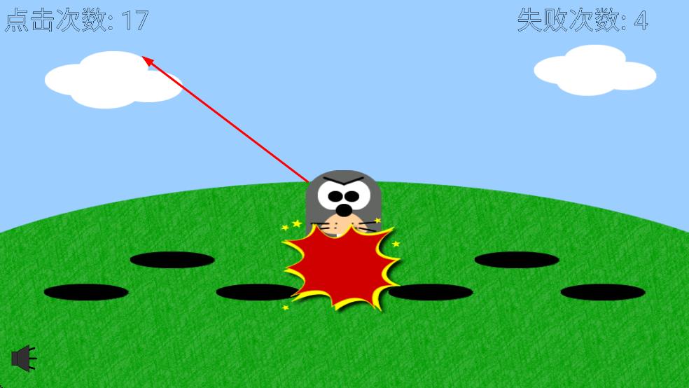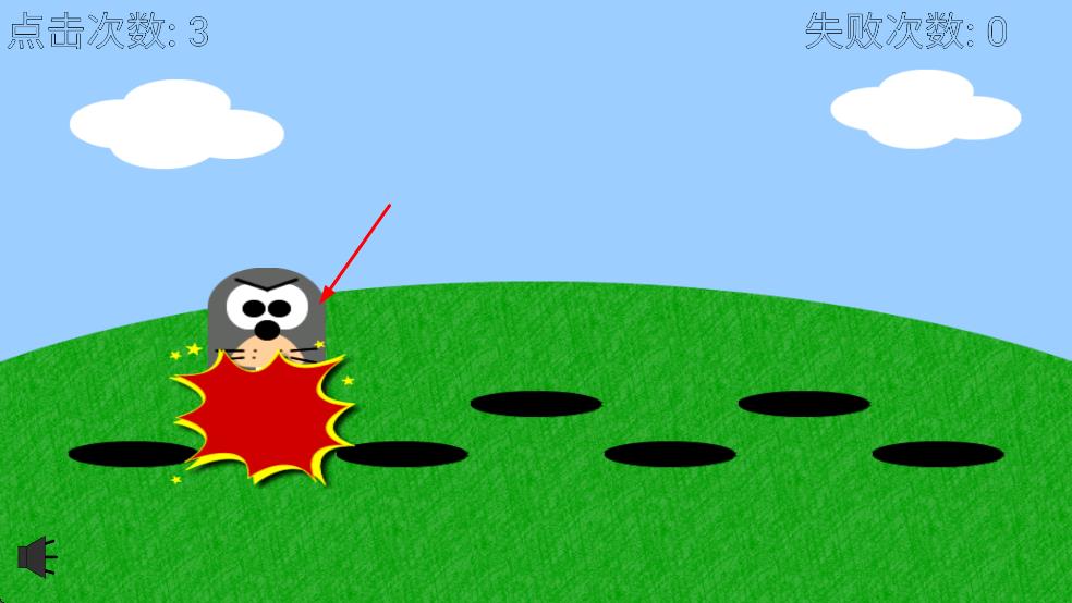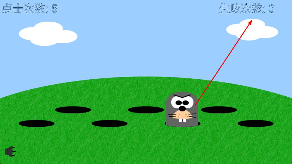 1、点击从洞口钻出的地鼠,累计左上角点击次数。