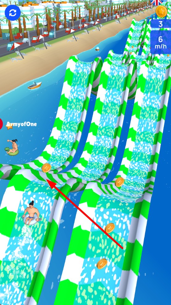 2、动态滑道机制:每条滑道内置移动水浪、随机加速带,且每局赛道的元素分布会随机重组,即便重复挑战同一场景,也能玩出截然不同的竞速体验,拒绝单一玩法单调。