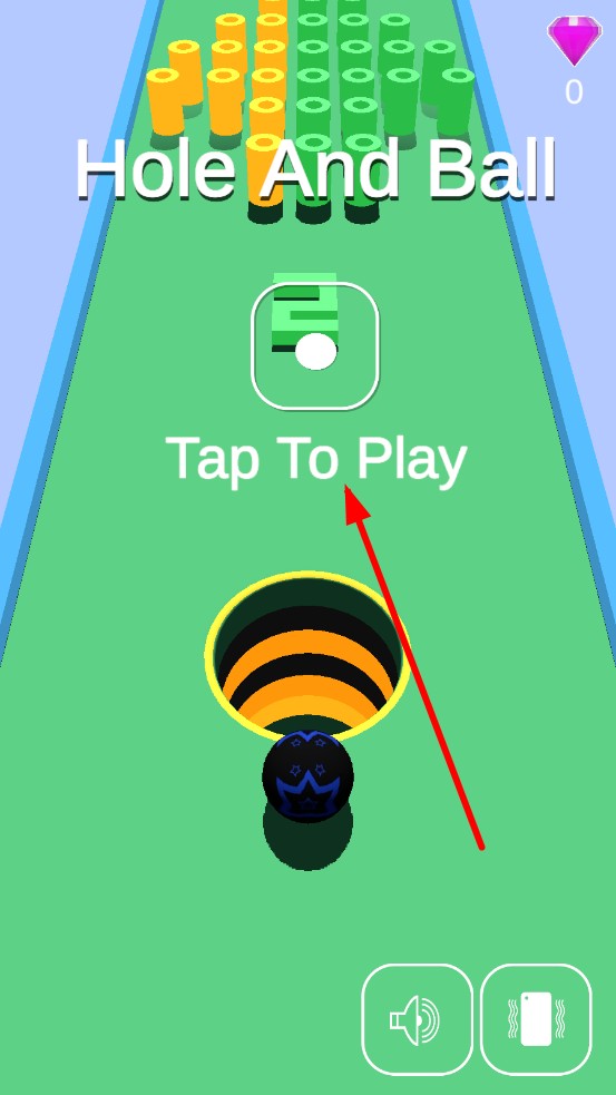 1、点击Tap To Play启动,黑洞球自动向前滚动,控制黑洞的范围,吞噬彩色方块与加速、护盾道具,积累成长资源。