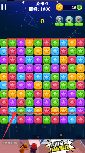 2、优先消除底部或被压住的星星,这样上面的星星会自动下落,容易形成连续消除的连锁反应。
