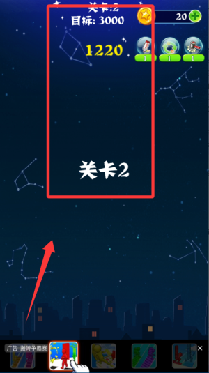 1、进入关卡后先观察星星分布,找颜色相同且相邻的两个以上星星,点一下就能消除,为后续落下创造机会。
