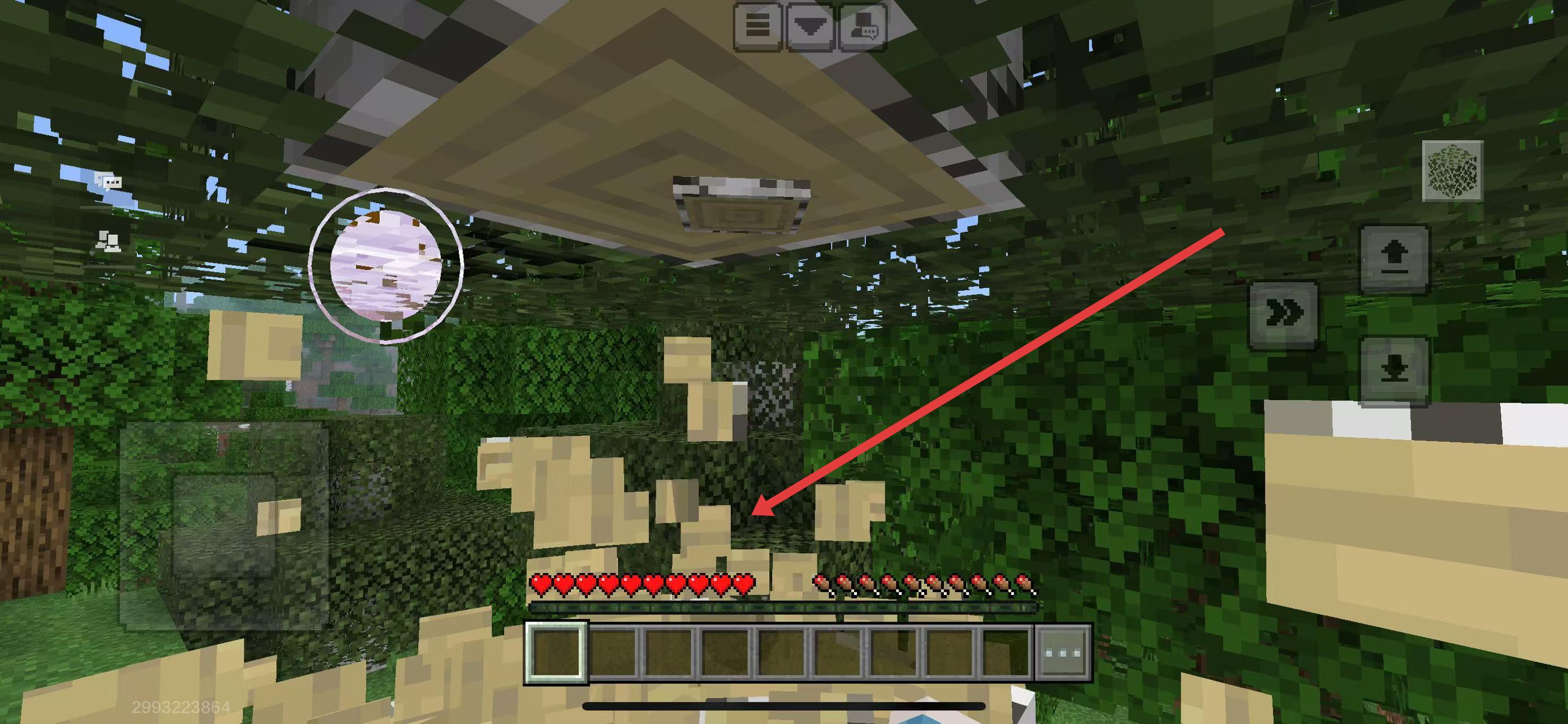 2、对准树叶长按,用工具破坏树叶,可获取掉落物,同时能清理遮挡,探索树上可能存在的资源或空间。