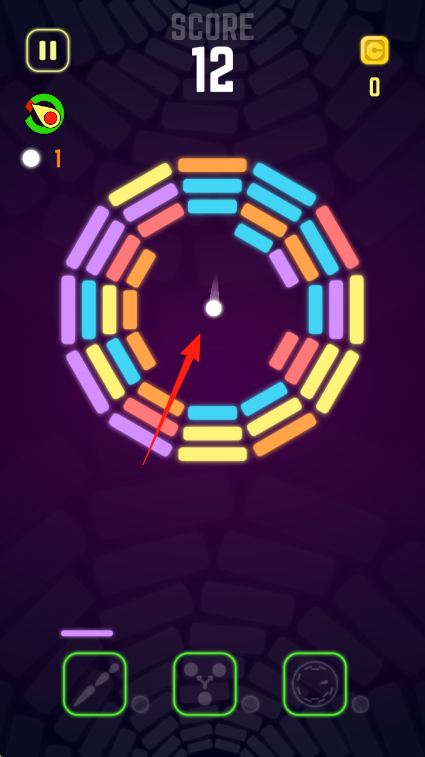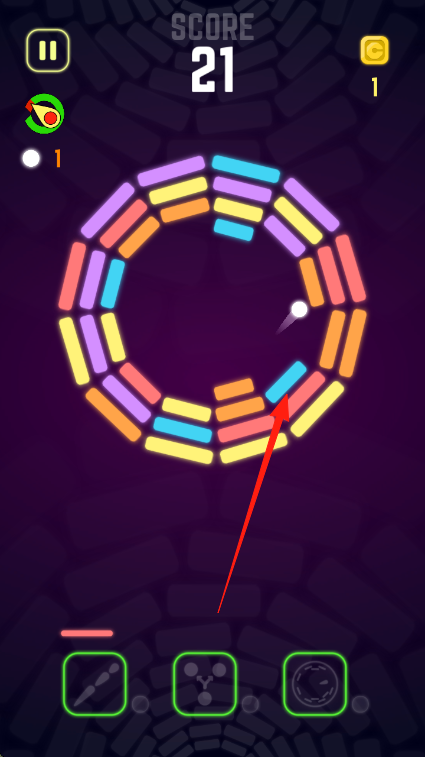 2、随着游戏推进,彩色环状方块会逐渐减少,把握好小球的撞击角度和时机,争取更多有效撞击。