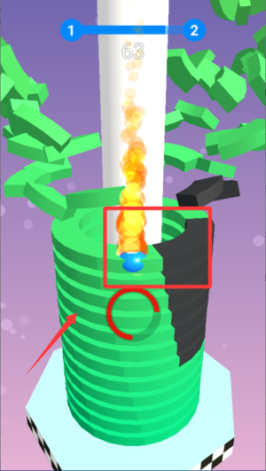 2、下落时注意看障碍位置,快到时及时松手让球停下,等空隙出现再继续按住往下走,别心急撞上去。