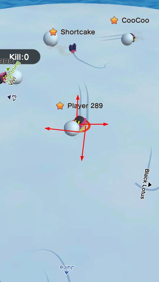 2、灵活调整对抗策略:竞技过程中需实时观察周围其他雪球的体积大小,发现比自己小的雪球时,可主动追击并吞噬以加速成长,则迅速调整移动方向逃离,避免被吞噬。