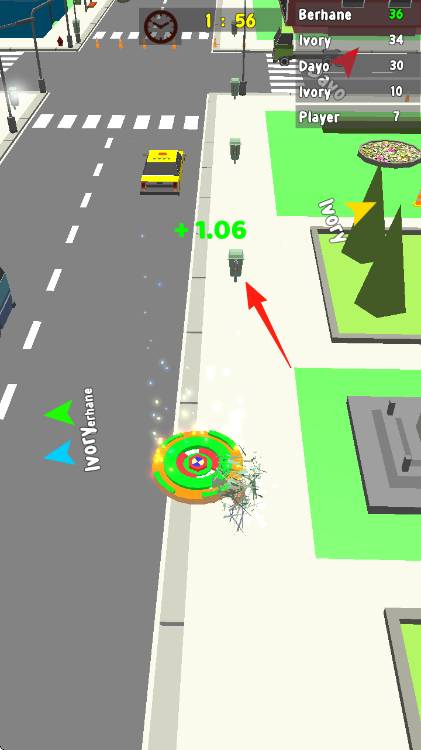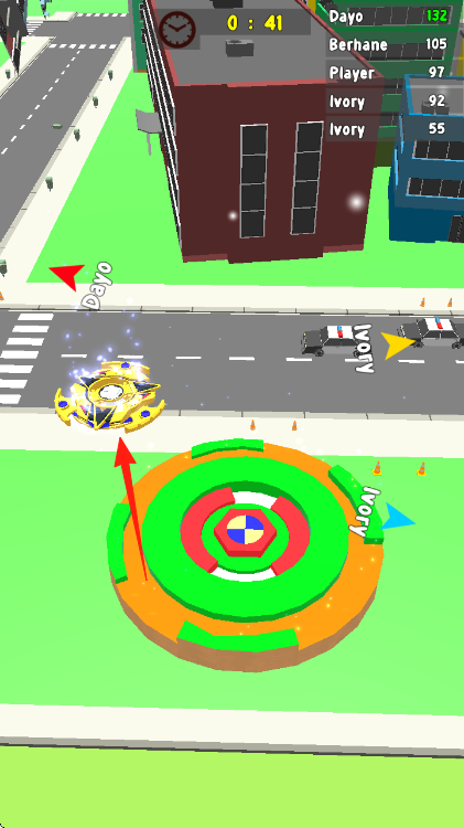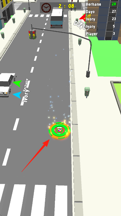 1、操控陀螺在街道移动、收集分数道具、注意计时器和排名、争取高分击败其他玩家。