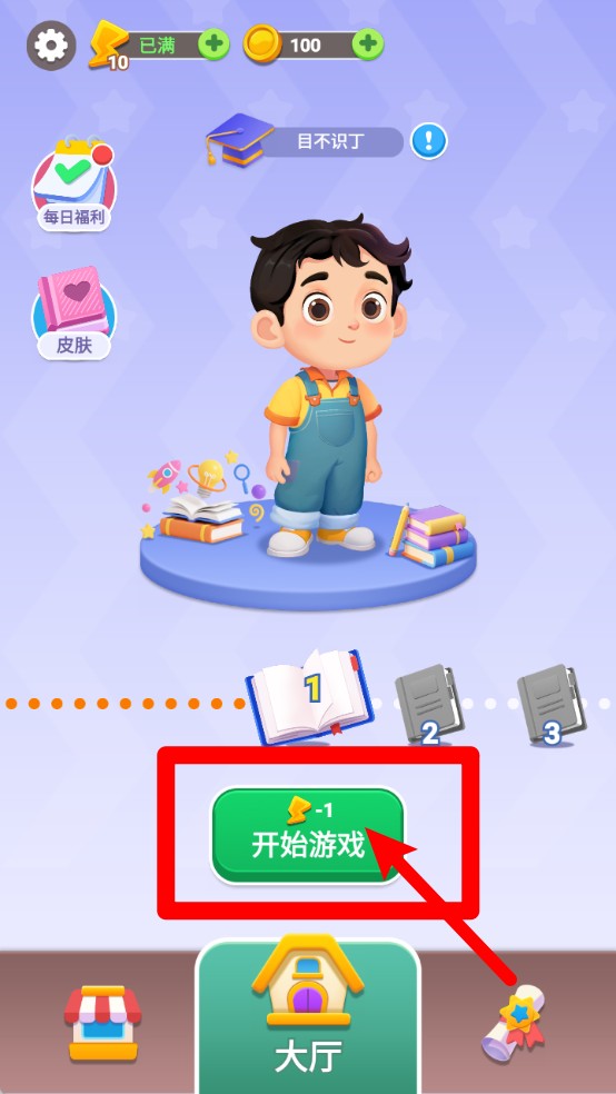 1.主页面中点击"开始游戏"按钮会消耗能量进入关卡,成功通关后还能逐步解锁更多奖励和新的挑战内容。