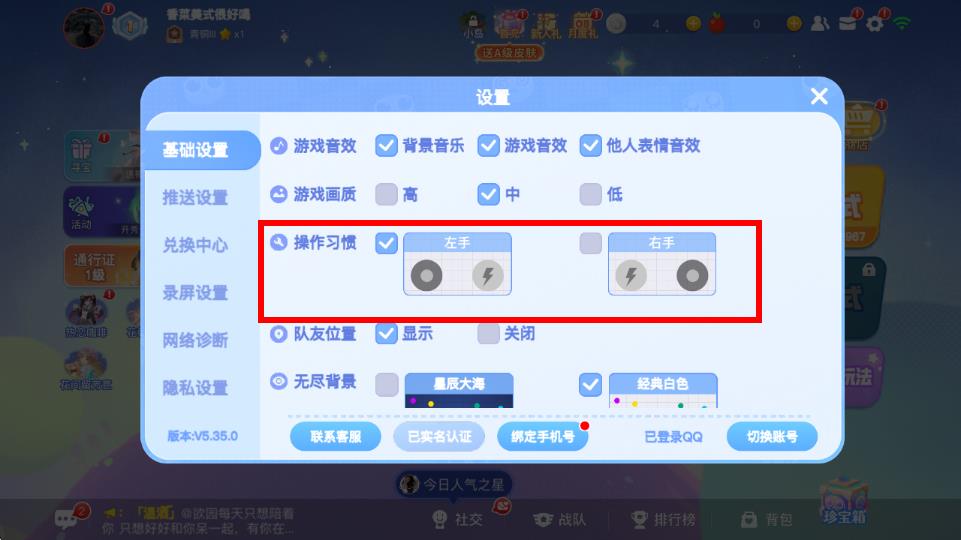 3、在基础设置内容中,找到操作习惯这一栏,能看到左手和右手两个选项 。根据自己的操作习惯,点击选择相应模式,让游戏操作更顺手。