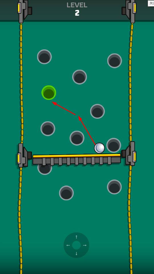 2、发射小球后,观察弹动轨迹,借助场地布局规划路径,确保小球落入绿洞而非黑洞。
