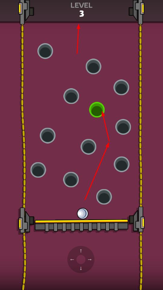 1、进入关卡后,调整弹板角度或发射方向,瞄准绿色洞穴,避开黑色孔洞,开启弹球挑战。