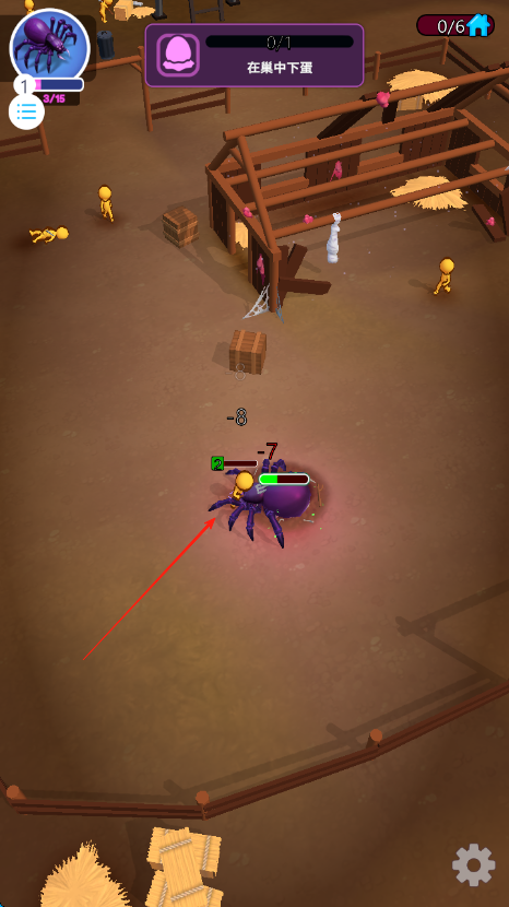 2、完成杀敌任务后,依照提示【在巢中下蛋】,操控蜘蛛寻找合适位置下蛋,过程中注意躲避外星人攻击。