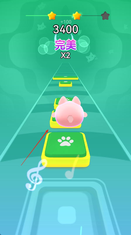 1、控制粉色小猫在带猫爪印的平台跳跃、按节奏精准跳跃得【完美】判定、积累分数前进即可。