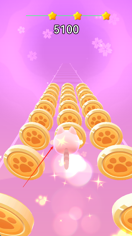 3、让小猫在金币阵跳跃、精准踩金币获分数、积累到一定分数完成关卡目标即可通关。