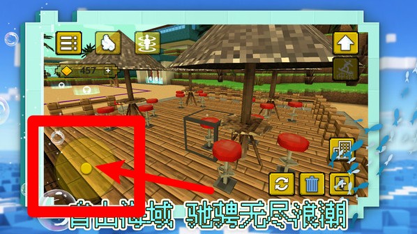 3.左下圆形虚拟摇杆用于操控角色自由移动,玩家可以在沙滩与小屋之间随意切换,探索不同场景,感受沉浸式的像素海滨冒险体验。