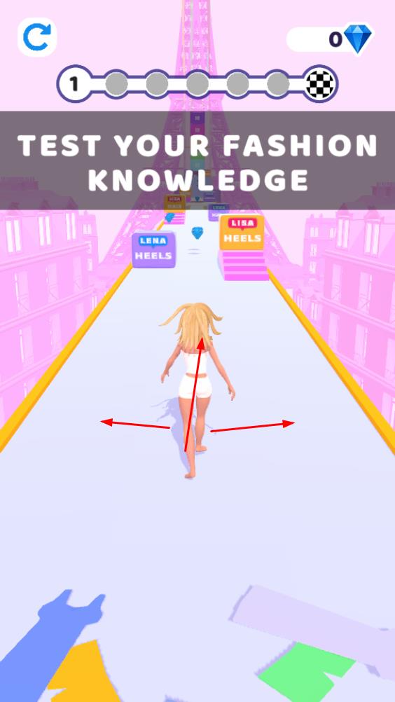 1、沿跑道选择对应时尚类别通道,测试时尚认知。