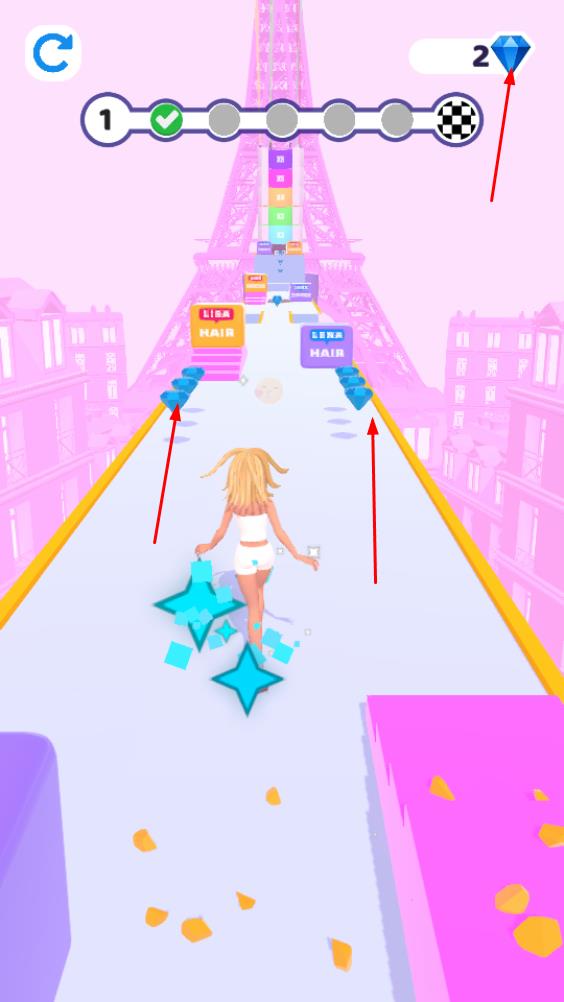1、操控选路优化操作:玩家需灵活控制小姐姐的移动位置,在观察关卡内障碍物与路线分布后,选择能高效抵达终点的最优行动路线,同时不断优化操作细节,调整转弯时机。