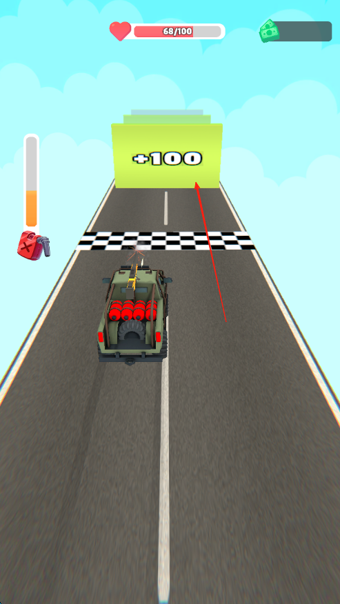 3、持续前进,冲过带有【+100】字样的标志获取奖励,尽可能保持较高生命值抵达终点,完成关卡。