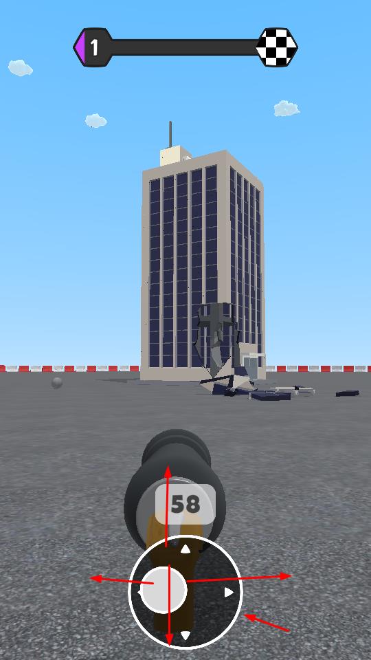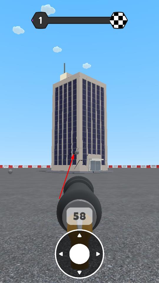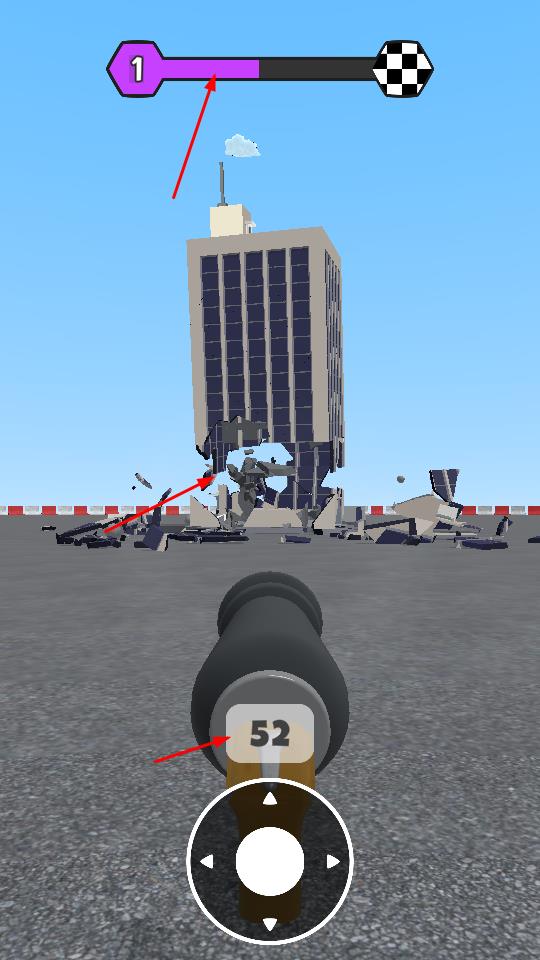 1、操控炮弹发射器瞄准大楼,发射标数炮弹,开启建筑破坏进程。