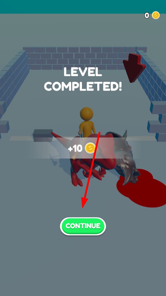 3、击溃所有入侵怪物后,冰墙进度条满额,画面弹出LEVEL COMPLETED,点击CONTINUE领取金币,解锁新关卡与更强恐龙。