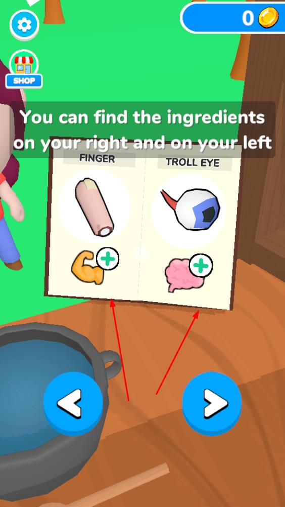 2、将收集的素材拖入黑色大锅,完成投放,为魔法合成做准备,推进制作步骤。