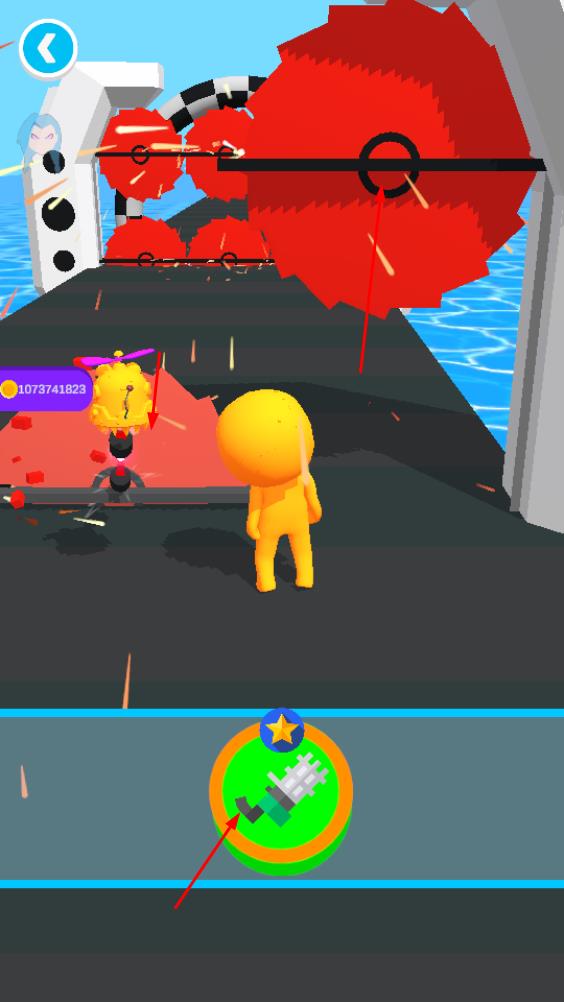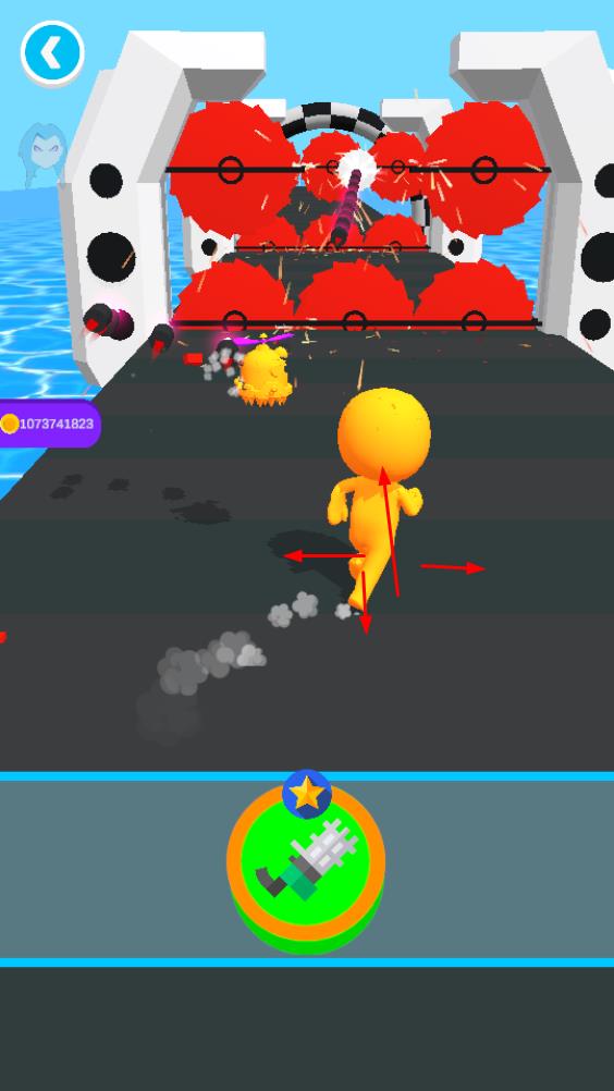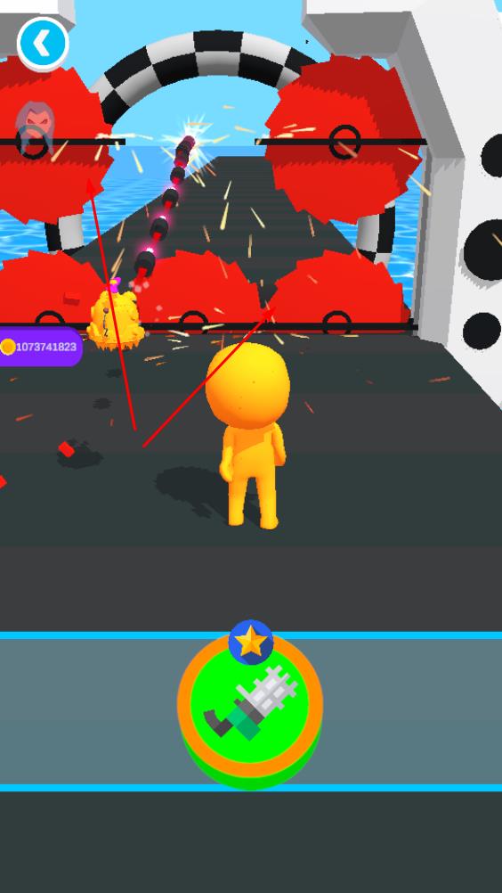 2、点击下方武器图标,释放武器破坏障碍或对手,扫清前路,推进关卡进度。