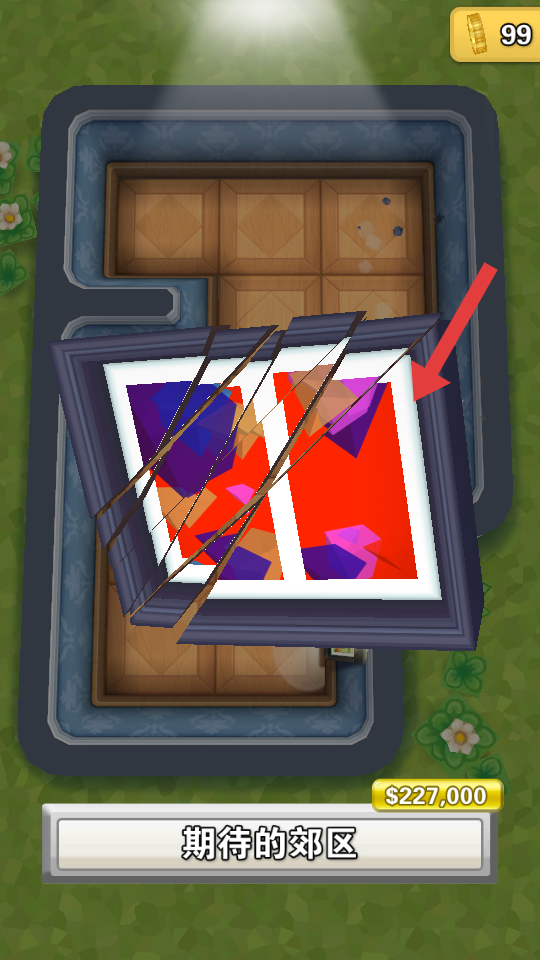 2、名画破碎操作:当名画尚未完全展现时,玩家需要模仿“切水果”的操作方式,在屏幕上滑动切割,将名画成功切碎,该操作需要一定的反应的速度。