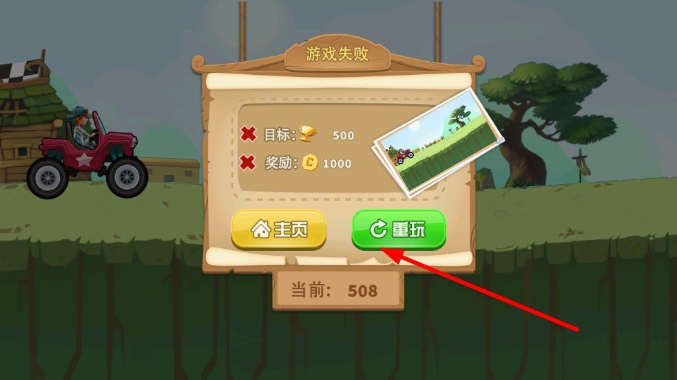 3、未达目标距离则闯关失败,可重玩观察上次翻车点,调整油门刹车时机,达目标解锁新赛道、车辆,积累金币继续改装,冲击更远距离纪录。
