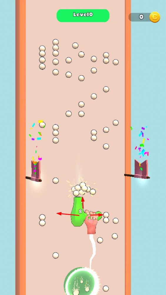 2、留意空中增益道具,让发射器接住,提升小球数量,增强闯关能力,助力关卡推进。