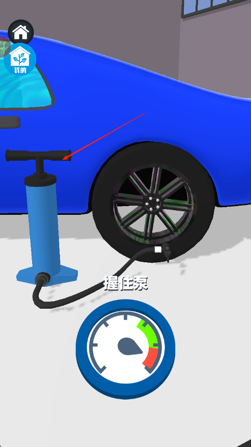 3、完成涂鸦后,找到打气泵,握住泵的把手,按照提示操作打气泵,给汽车轮胎充气,完成整个嘻哈涂鸦流程。
