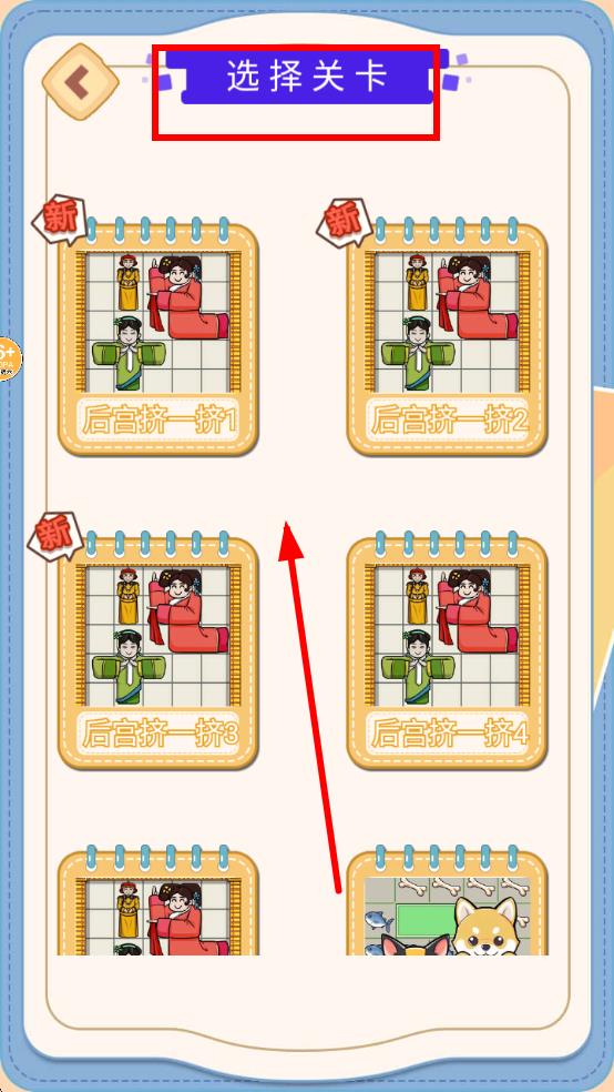 2、进入选择关卡界面,有多个带新标识关卡,如后宫挤一挤1等,选想挑战的关卡点击进入,开启对应解谜挑战。