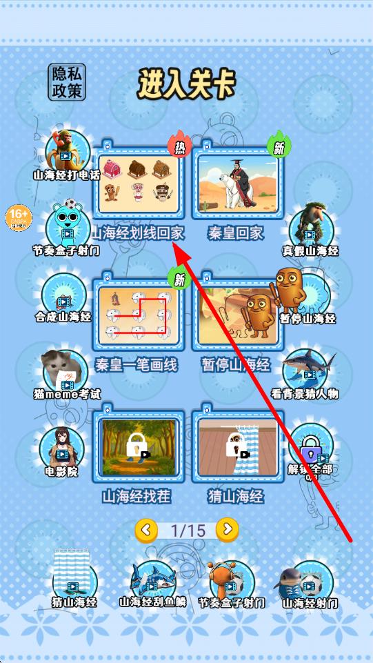 1、在游戏关卡选择界面,找到标有山海经划线回家且带热标识的关卡,点击进入,开启该关卡挑战。