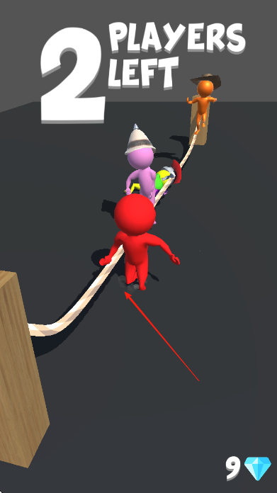 3、持续跳过绳索保持通关,随着对手减少,上方显示剩余玩家数变少,当成为最后留在场上的火柴人时,即可获胜。