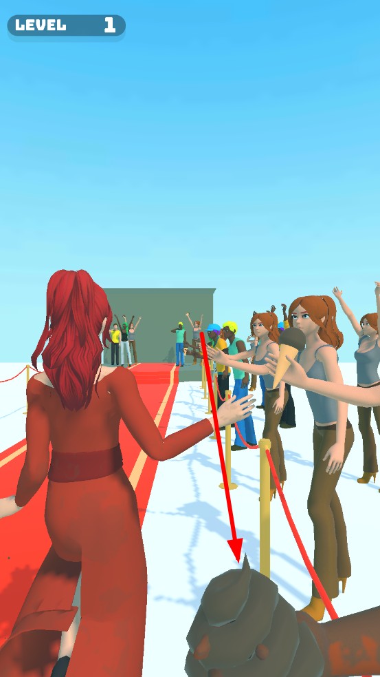 1、通过滑动屏幕操控红毯上的名人角色移动,指尖轻划调整行进方向,瞄准欢呼的粉丝、散落的道具等互动目标,发起触碰。