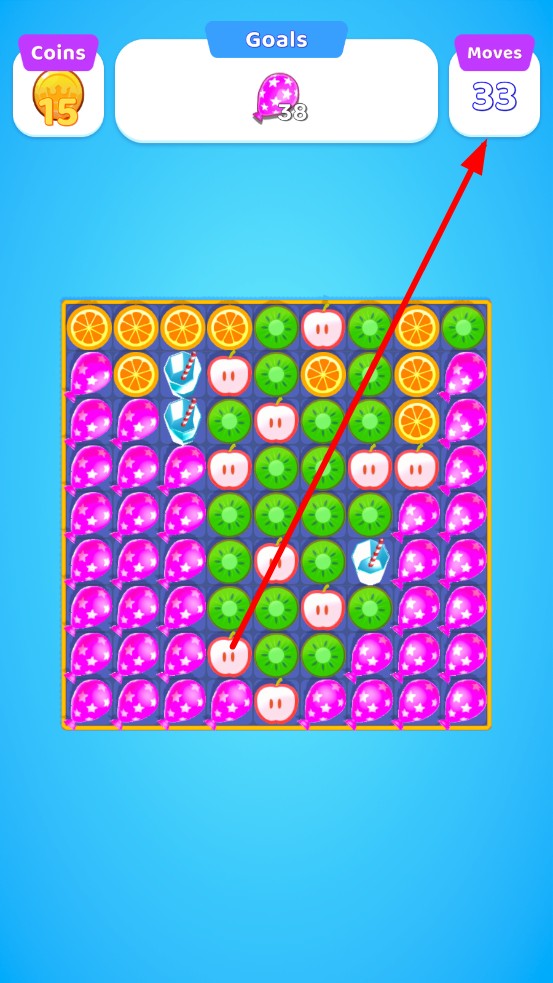 2、注意右上角的步数剩余和上方的通关要求,在步数结束前,收集到足够多的气球。