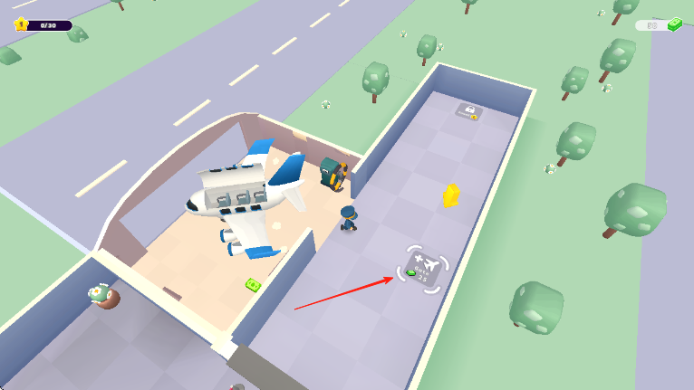 3、持续关注机场各处,收集地面上的各种道具如红箭头所指道具,完成特定任务,获取星星等奖励,推进机场运营和关卡解锁。
