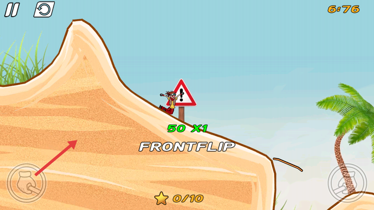 2、跳跃时机把握:在遇到坡道或障碍时,判断距离后适时点击屏幕触发跳跃,确保落地位置平稳,同时利用跳跃收集高处道具。