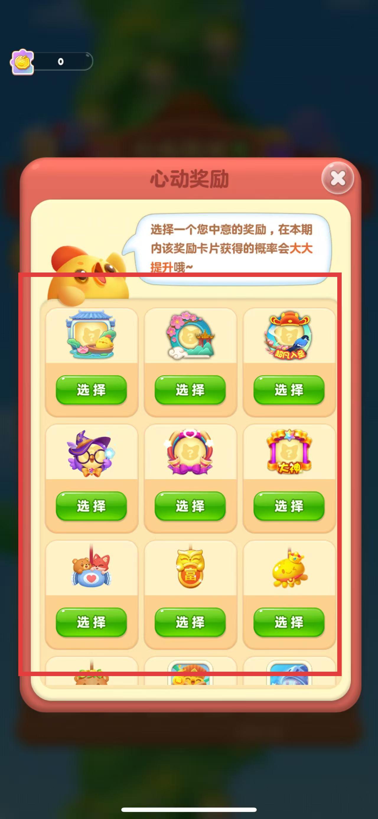 3、在心动奖励界面里,选择自己想要的奖励,点击对应奖励下方的选择按钮,按要求完成兑换操作。
