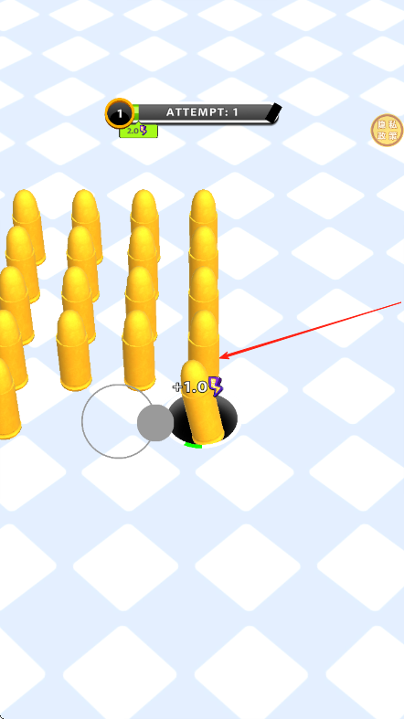 2、在过程当中要让黑洞吸附黄色弹药,获取+1.0等增益,继续操控黑洞收集更多弹药。