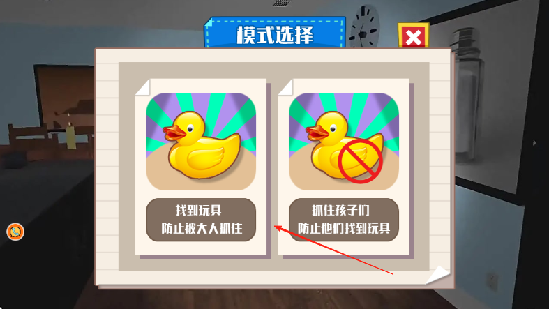 1、进入游戏,选择抓住孩子们防止他们找到玩具模式,点击相应图标即可。