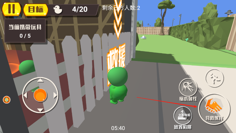 3、发现被抓住的己方伙伴时,点击右下角营救伙伴按钮实施救援,增加己方人数,完成关卡目标。