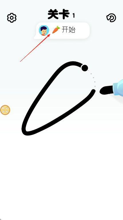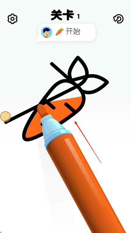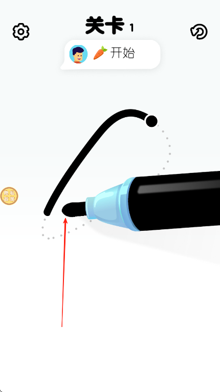 1、进入关卡1,点击屏幕,按红箭头方向用黑色画笔勾勒图形轮廓,自由发挥或按构思绘制。